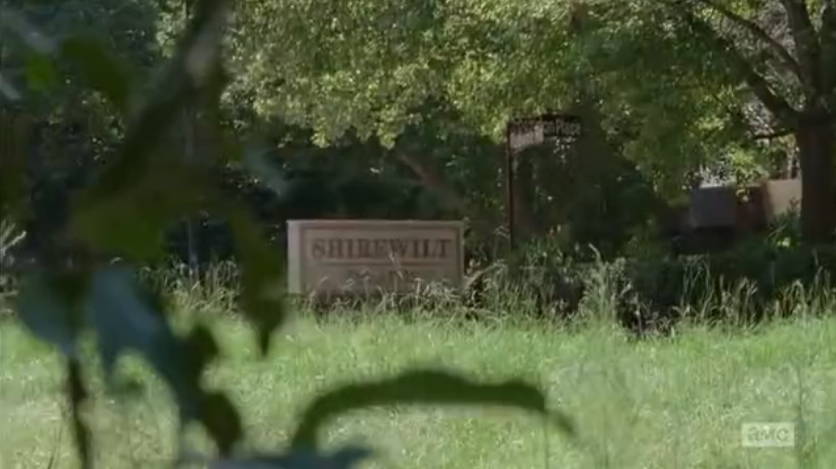 The party of five (that was actually the title of an old soap opera) jump over the gates to Wiltshire. No way! Is that the Wiltshire Estates from the comic book? You beat it is, since the place is abandoned with areas of high tree growth and burnt up sections of suburban homes. Apparently, in Season 2, Shane and Andrea go on a supply run and make their way to Wiltshire Estates. Except the Wiltshire in this current episode is way closer to the look from the comic book. The gated entrance says it all.