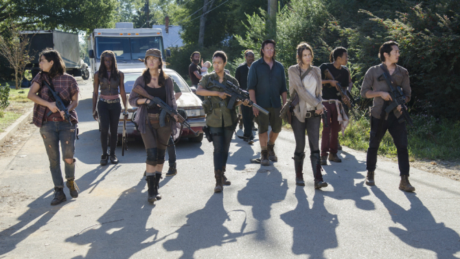 Inside Alexandria, Deanna has delegated her son and Nicholas to lead Glenn, Tara, and Noah in a supply run. Aidan Monroe introduces himself and tells them he worked in a special area of the army. The same area where Noah’s father was part of. Aidan then provides them with minuscule handguns while him and Nicholas bear AK-47s and fully automatics. Aidan tells them that they must do exactly what he says as he reveals to them that he’s an asshole and a douche bag. Well said Aidan. Aidan goes on to say that their joining him because the last crew got killed. Aidan explains that they circle the compound by gradually steering away. They’ve gone as far as 53 miles away from Alexandria.