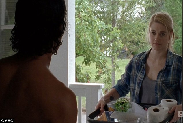 Meanwhile, Daryl is being interviewed by Deanna. She asks him to sit down, but he ignores her request and instead quietly observes the room in its entirety while chewing on some peanuts in a small dish. Daryl seems to have regressed to his earlier self. Emotionless to the world around him while living in his own mind. Deanna tries to tell him that the community is safe.