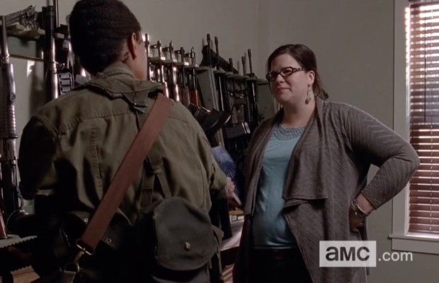The three device a plan to break into the armory and steal a few weapons so they could be armed at all times within the community. The current standard law of Alexandria is that everyone within the walls must return their weapons and firearms. Carol tells Daryl and Rick she can get inside the armory and unlock the window. No one else from the community really uses them. A roaming walker approaches, before Daryl can get in a kill, Carol wastes a couple of bullets into the walker from a silenced pistol in order to account for the journey. Rick notices on a dead walker, the letter, “W” cut into the corpses forehead. What could that mean? I think we’ve been seeing that “W” in quite a few places. That must be a sign of some troubling gang or worse, an army of thugs.